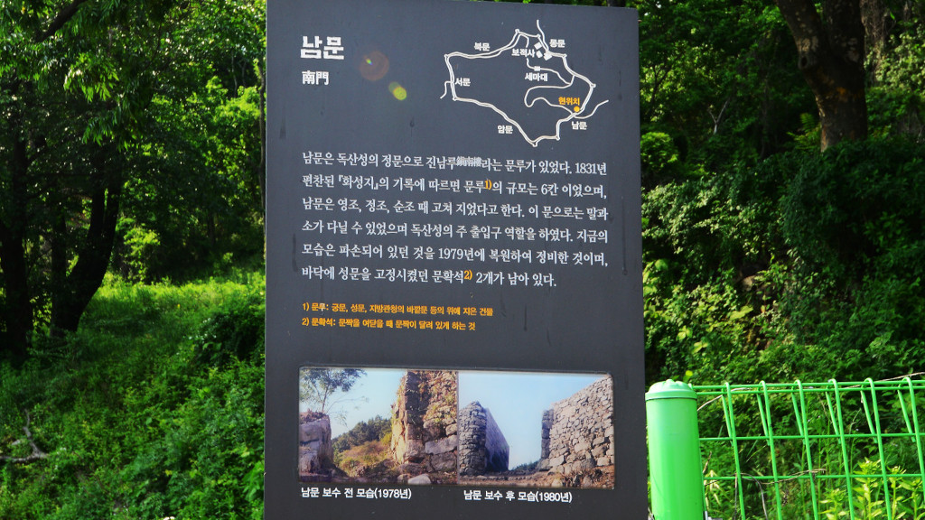 성 둘레는 3240m이고 문도 4개이지만 성안에 물이 부족한 것이 큰 결점이었다.