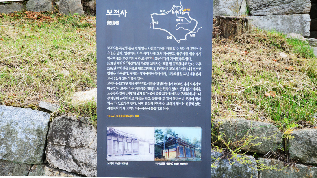 동문으로 들어가 보적사-남문-암문-서문-북문으로( 북문은 아직도 발굴 공사중)- 세마대-보적사로 돌아옵니다.