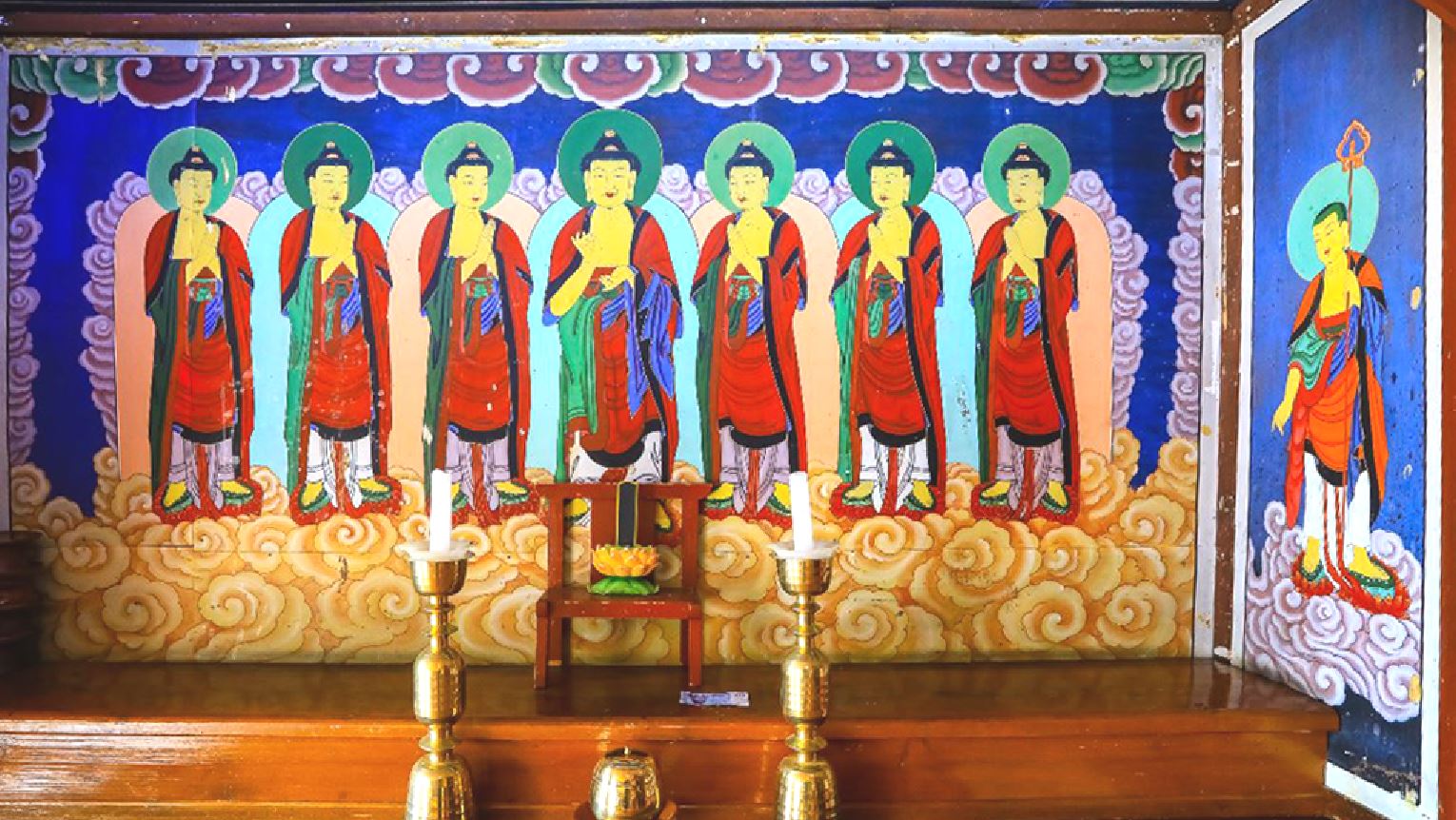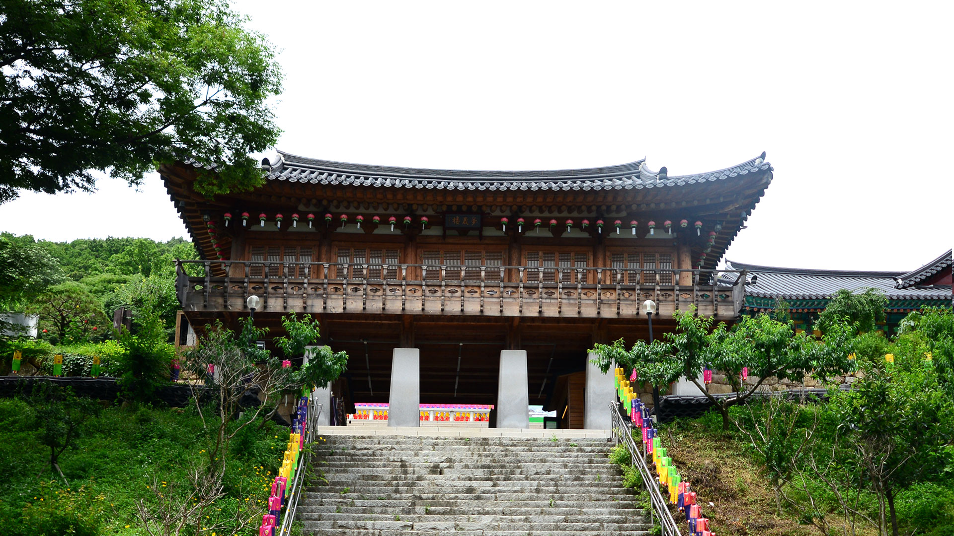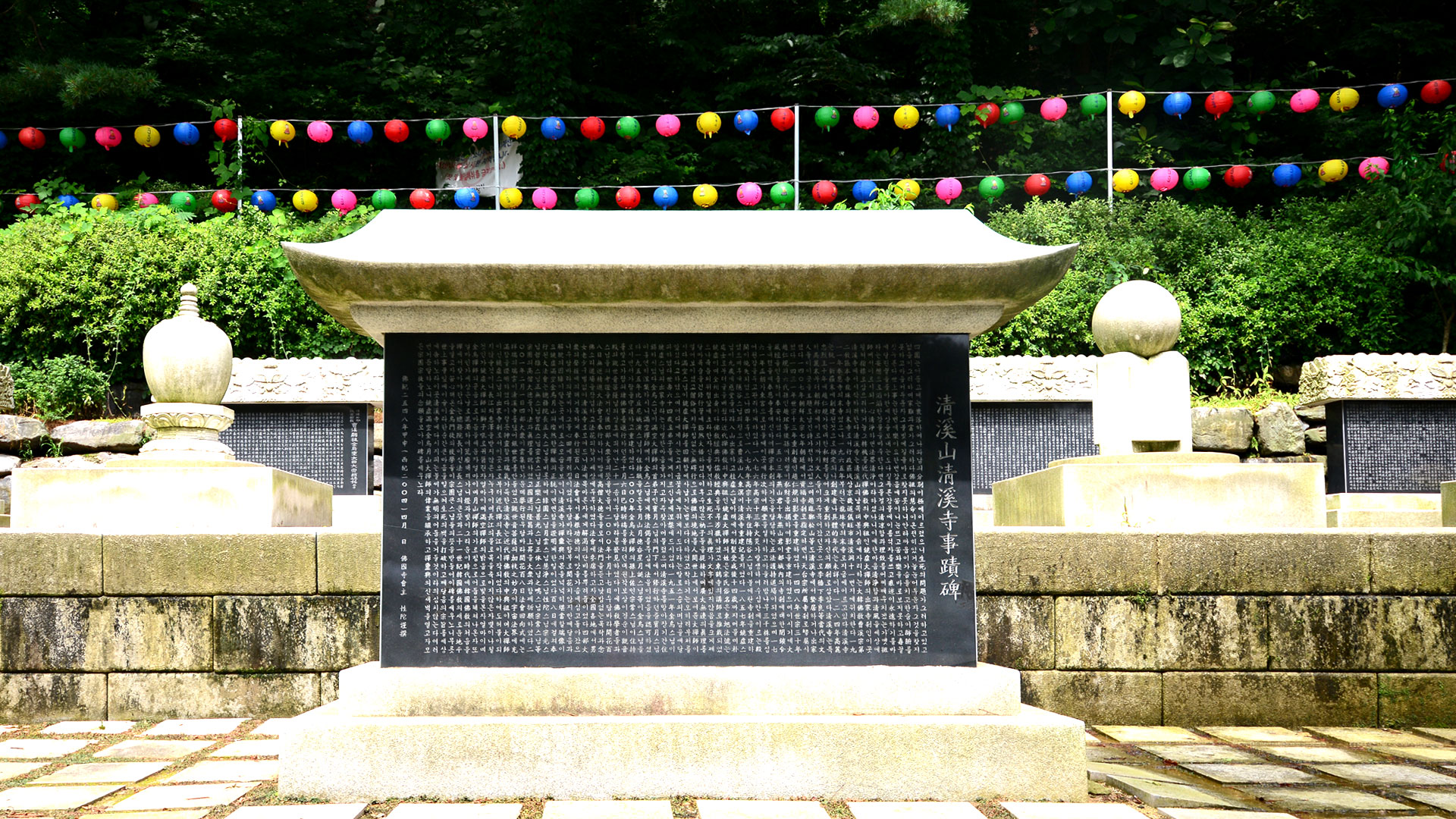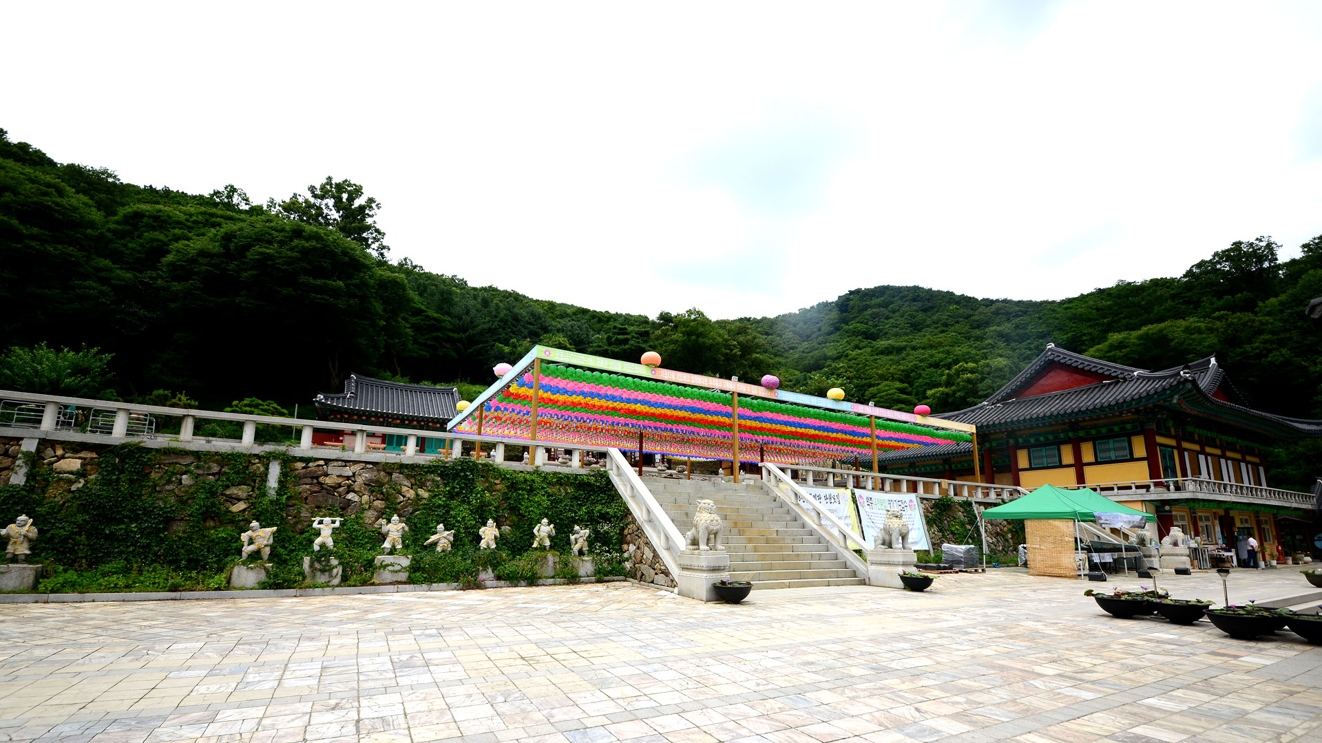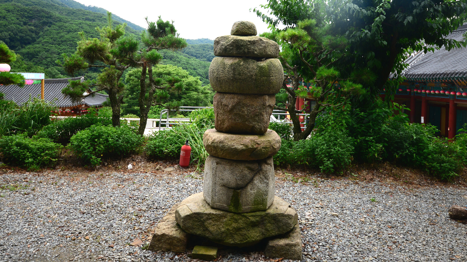 청게사는 일주문이 없고 진입 계단 좌 우에 석조 사천왕이 자리하고있다