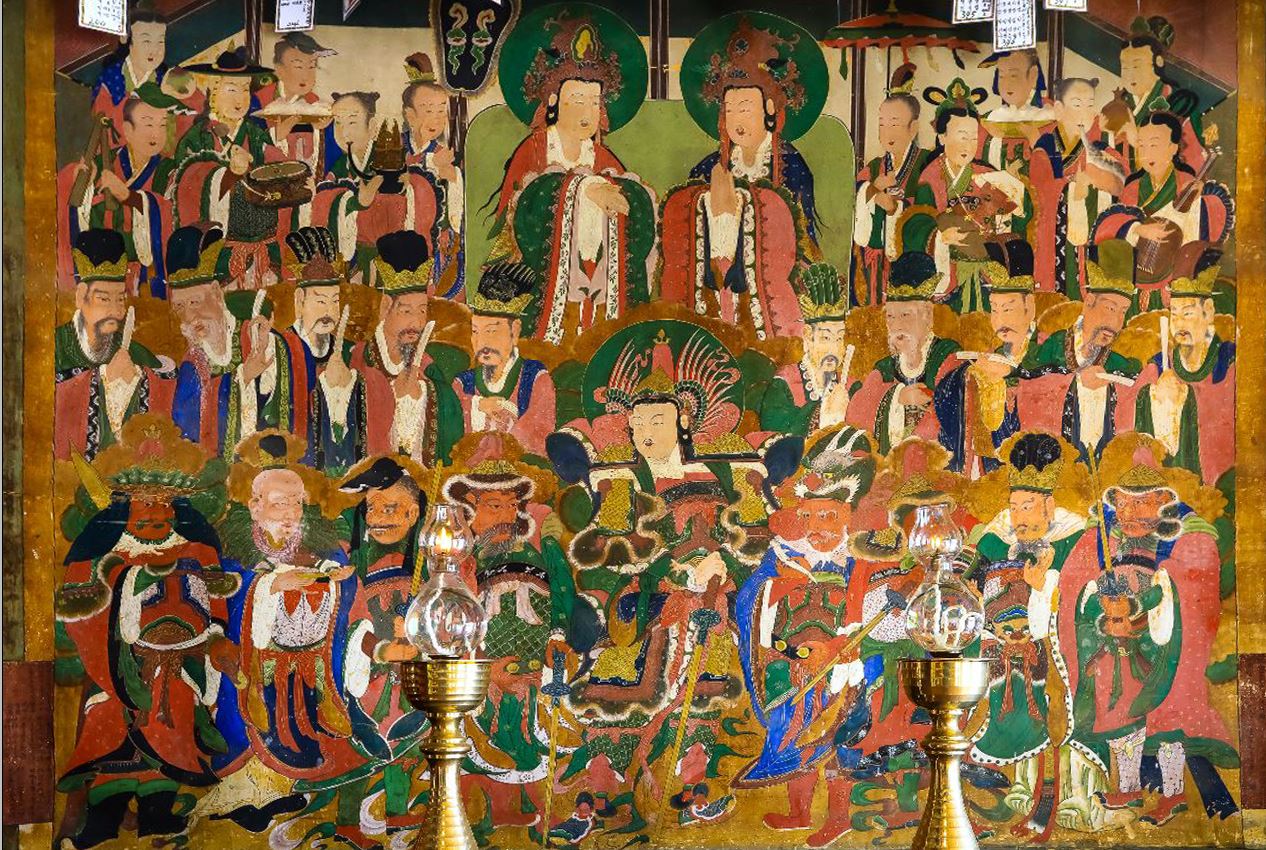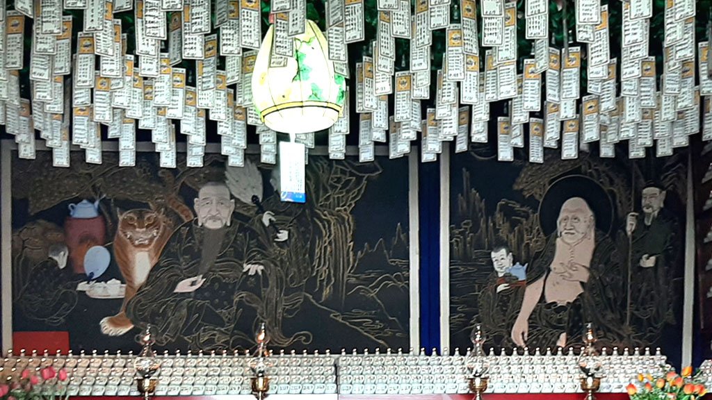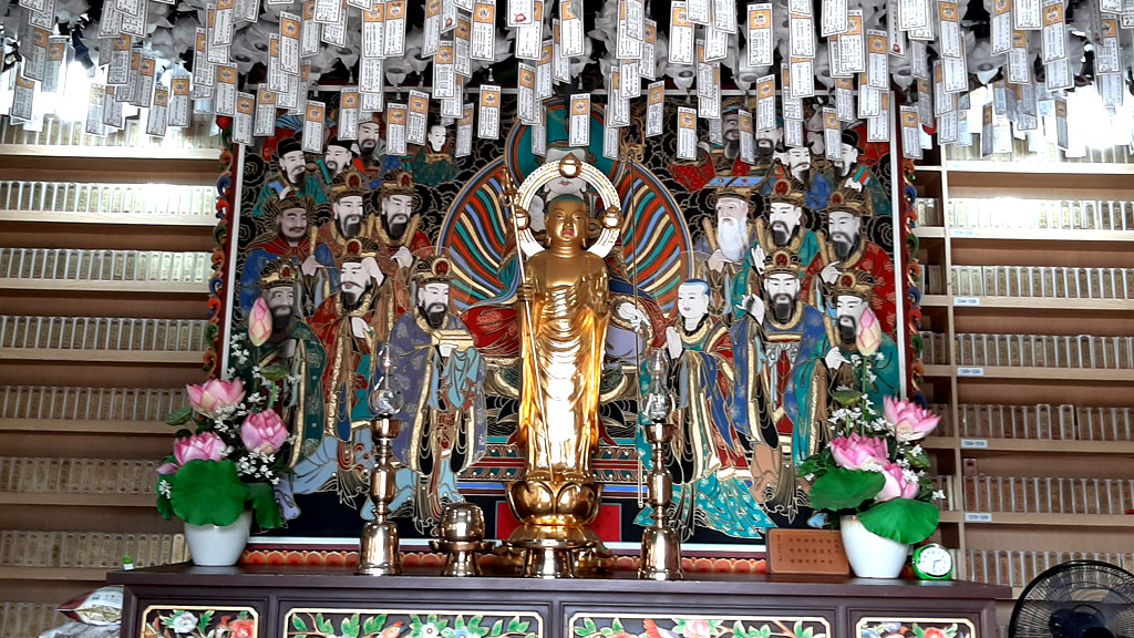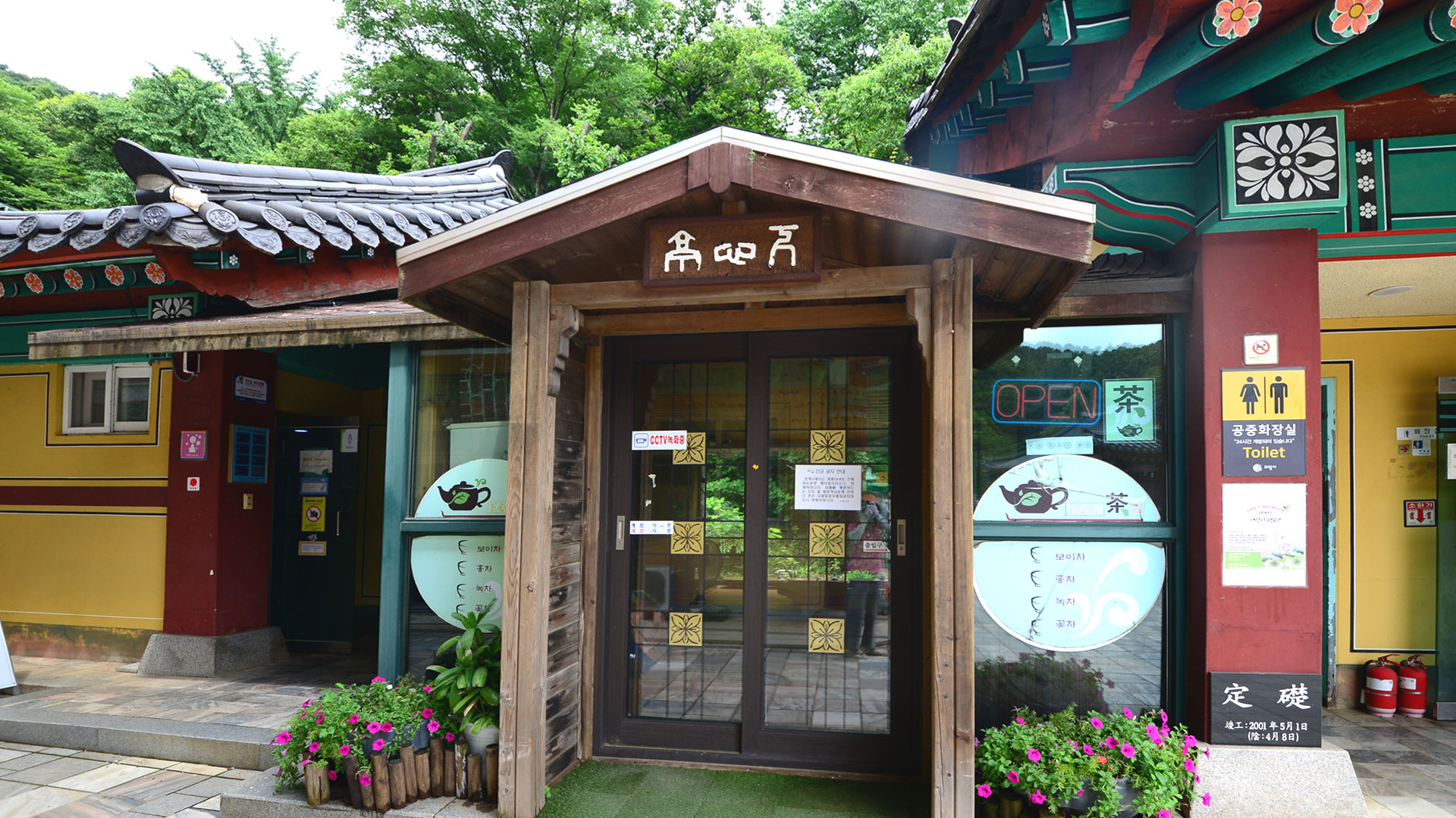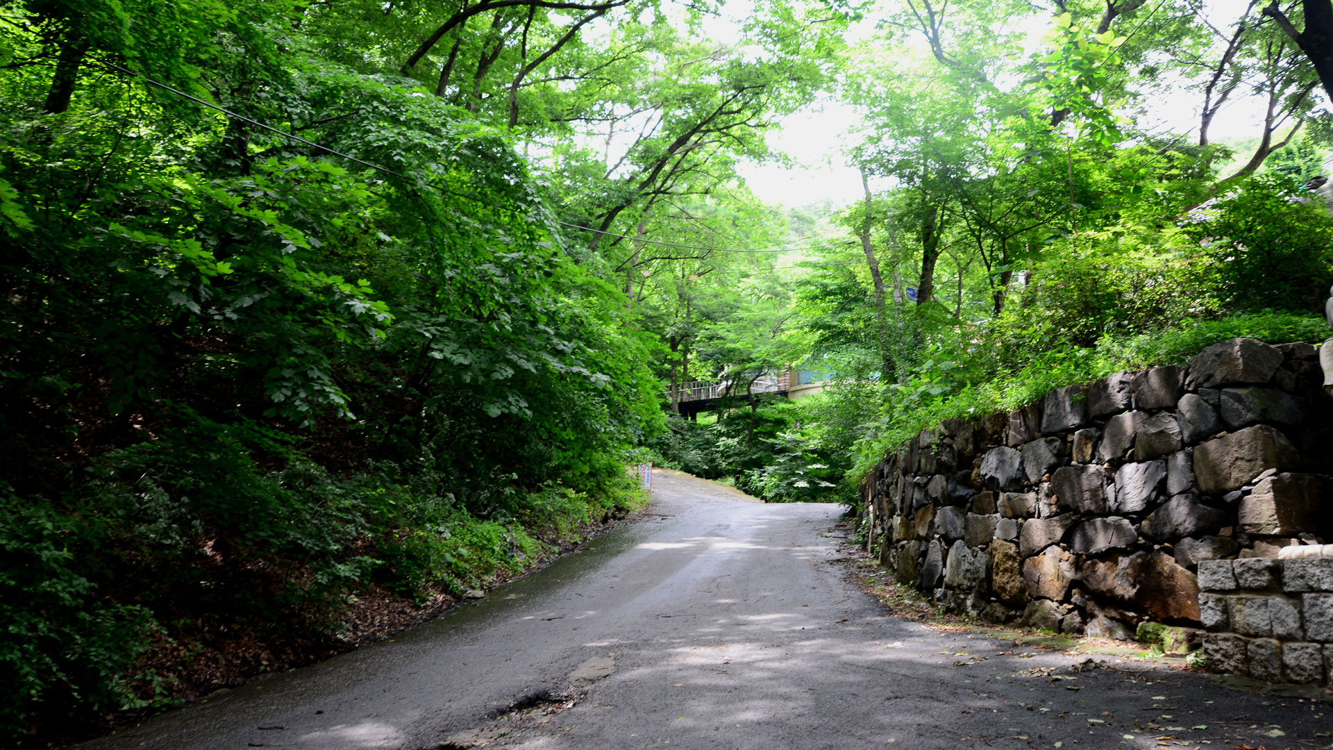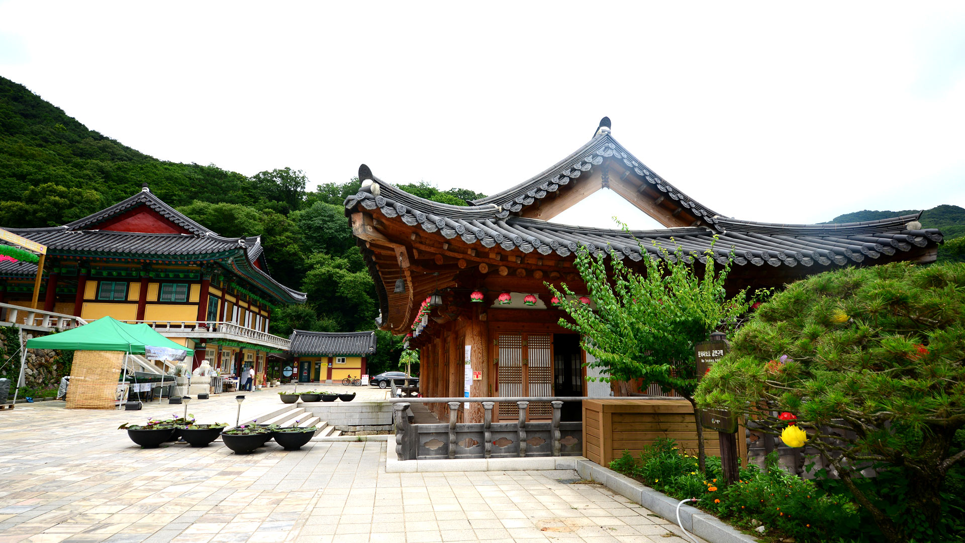청게사는 일주문이 없고 진입 계단 좌 우에 석조 사천왕이 자리하고있다