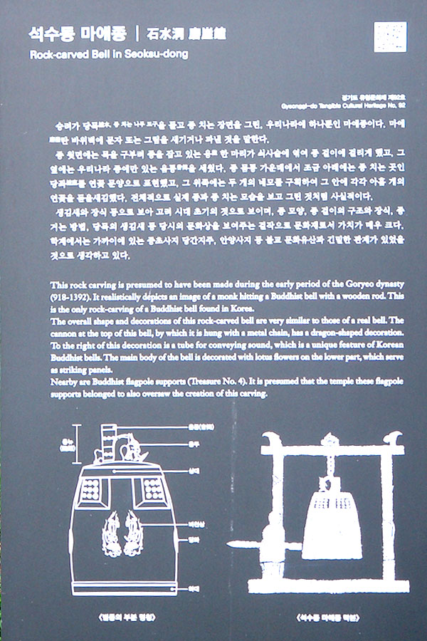 관곡지,소래습지공원을 보고 집으로 돌아오는길... 오래전부터 궁금했던 안양의 유적지가 궁금해졌습니다..안양 석수동 마애종입니다..바위에 새겨진 조각으로 암벽에 새긴 종이라는 뜻으로 우리나라에 하나뿐인 암각화입니다.