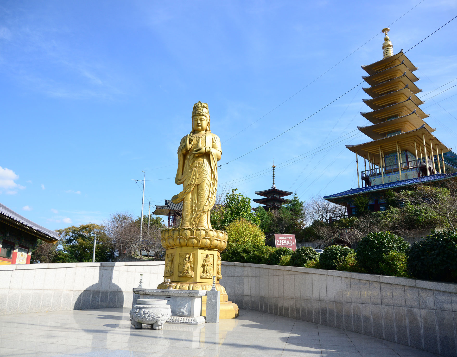 안면암은 대한불교조계종 금산사의 말사다. 사찰의 역사는 오래되지 않았으나 태안을 방문한 여행자들이 거의 들렀다 가는 필수 탐방 코스다. 그 이유는 사찰 앞쪽으로 펼쳐진 바다 풍광을 보면 바로 알 수 있다. 안면암 앞에서 여우섬까지 부표로 연결되어 바다 위를 걸어 섬까지 갈 수 있기 때문이다. 이 부교를 걷기 위해 많은 여행자들이 안면암을 찾는다. 부표 위에 목재를 덧대어 만든 다리 위를 흔들흔들 아슬아슬하게 걸어 여우섬까지 가게 된다. 물이 빠지면 부교를 건너는 묘미는 덜해도 갯벌에 사는 다양한 생물을 관찰하는 재미를 느낄 수 있다. 바다에서 바라보는 안면암의 풍광은 또 다르다. 여우섬을 천천히 돌아본 뒤 뭍으로 돌아오며 만나는 안면암은 이국적인 모습을 보여준다. 3층으로 지어진 안면암의 건축도 독특하다. 마치 단양 구인사를 보는 듯 계단으로 이어진 법당이 극락보전, 비로전, 나한전으로 연결된다. 법당 앞에 서서 바다 풍광을 바라보는 것도 특별하다. 삼성각과 용왕각도 함께 자리하고 있다. 무량수전과 신중단의 돌탱화를 비롯해 다양한 탱화도 볼 수 있다. 법당을 둘러싸고 있는 야외공간에는 다양한 크기의 불상과 불탑들이 있어 눈길을 끈다. 고즈넉한 산사에서 가족과 함께 재충전의 시간을 가질 수 있는 가족 단위 템플스테이도 가능하다.