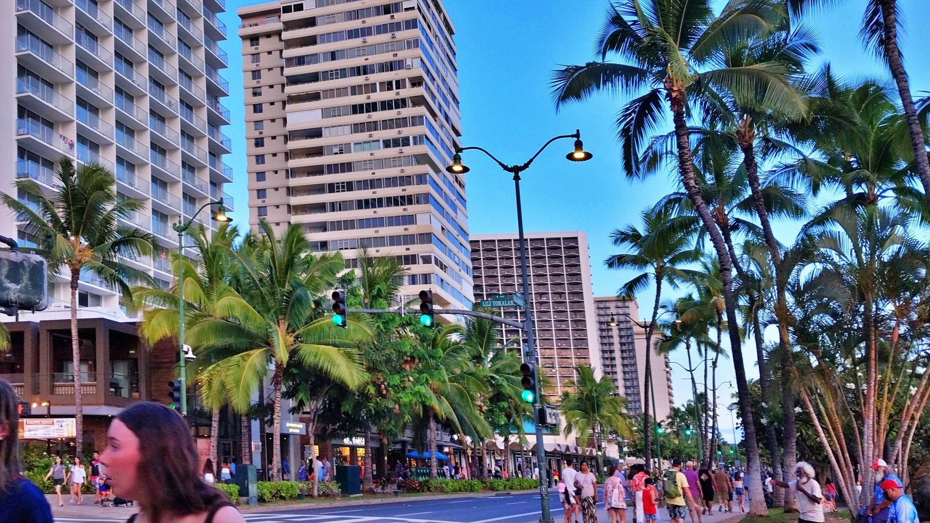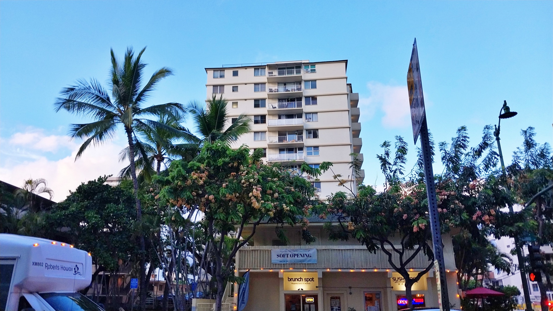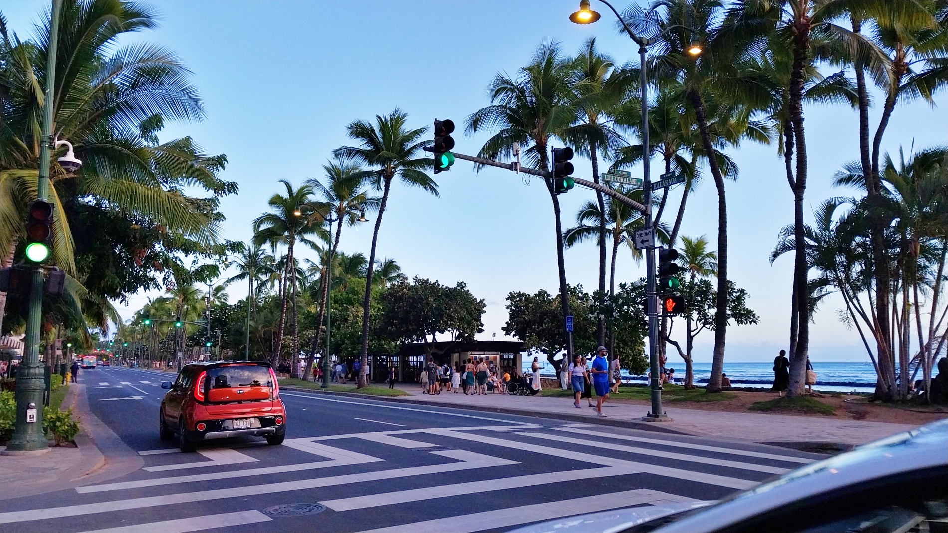 걸어서 5분 거리에 와이키키 해변이 있어요
