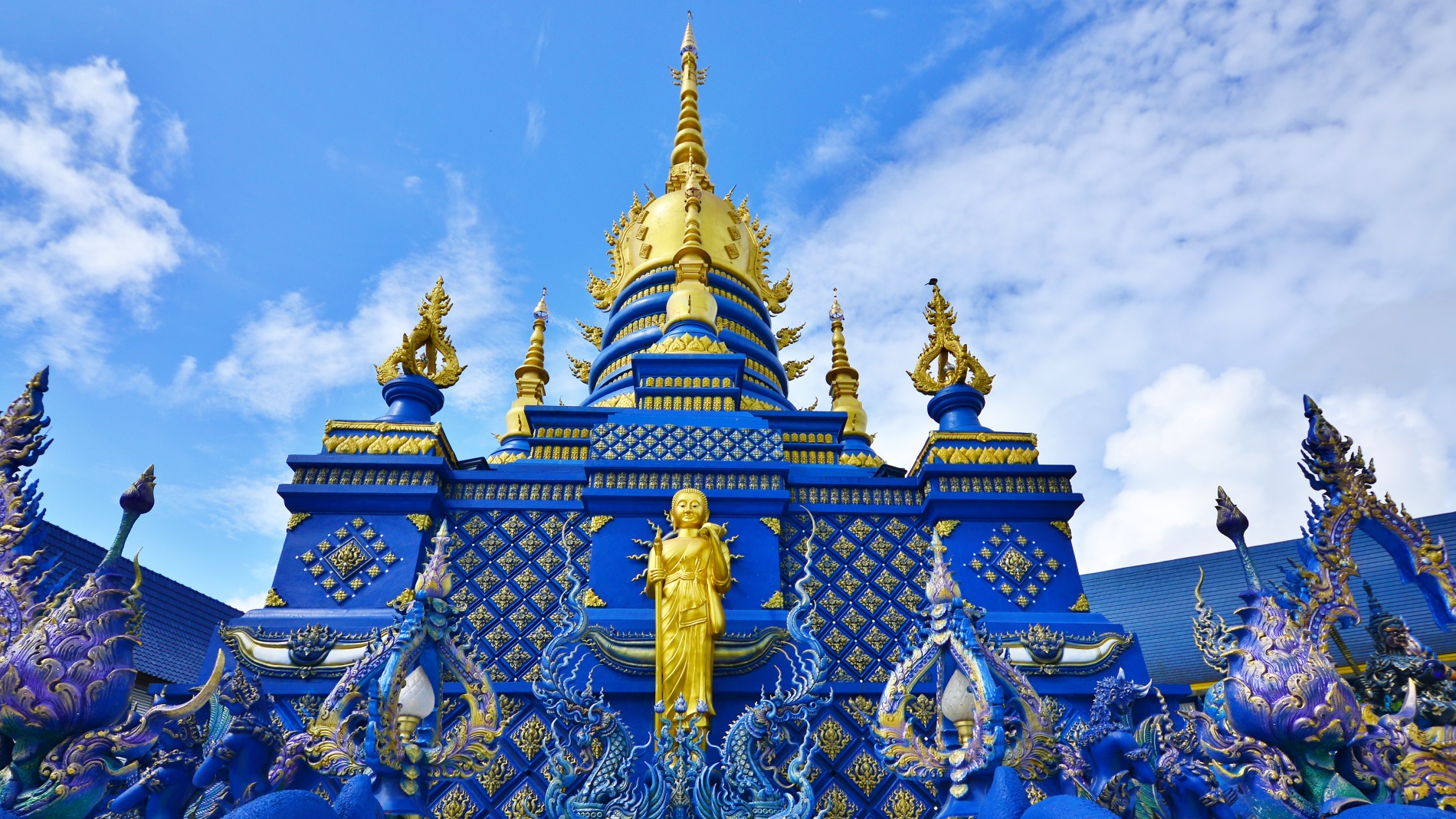 태국의 청색사원은 공식 명칭이 왓 롱 수에아 텐(Wat Rong Suea Ten)으로, 태국 북부 치앙라이에 위치한 현대적인 불교 사원입니다. 눈에 띄는 사파이어 블루 외관과 화려한 금색 장식으로 유명하며, 백색 사원(왓 롱 쿤)을 설계한 예술가의 제자가 디자인했습니다.