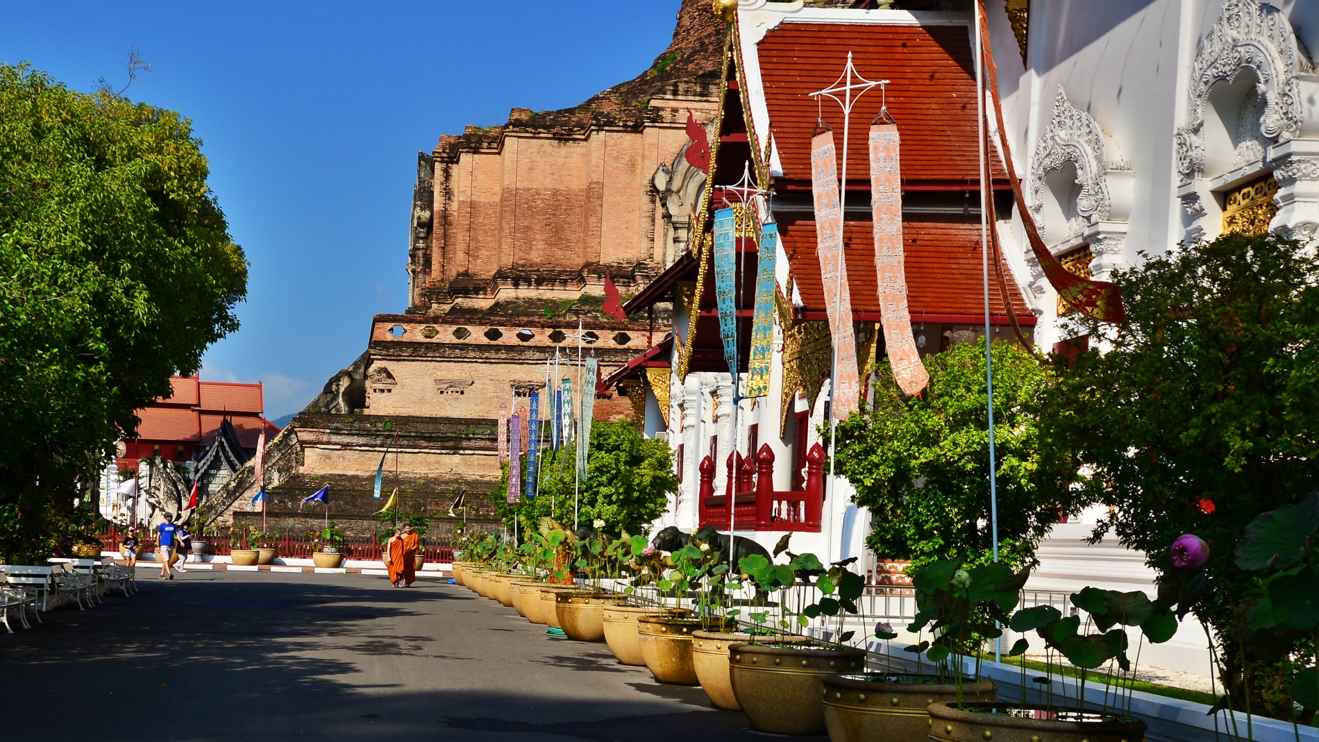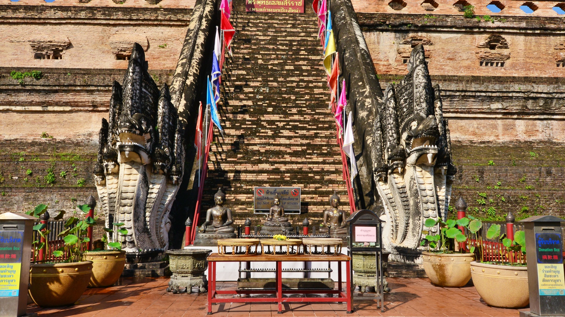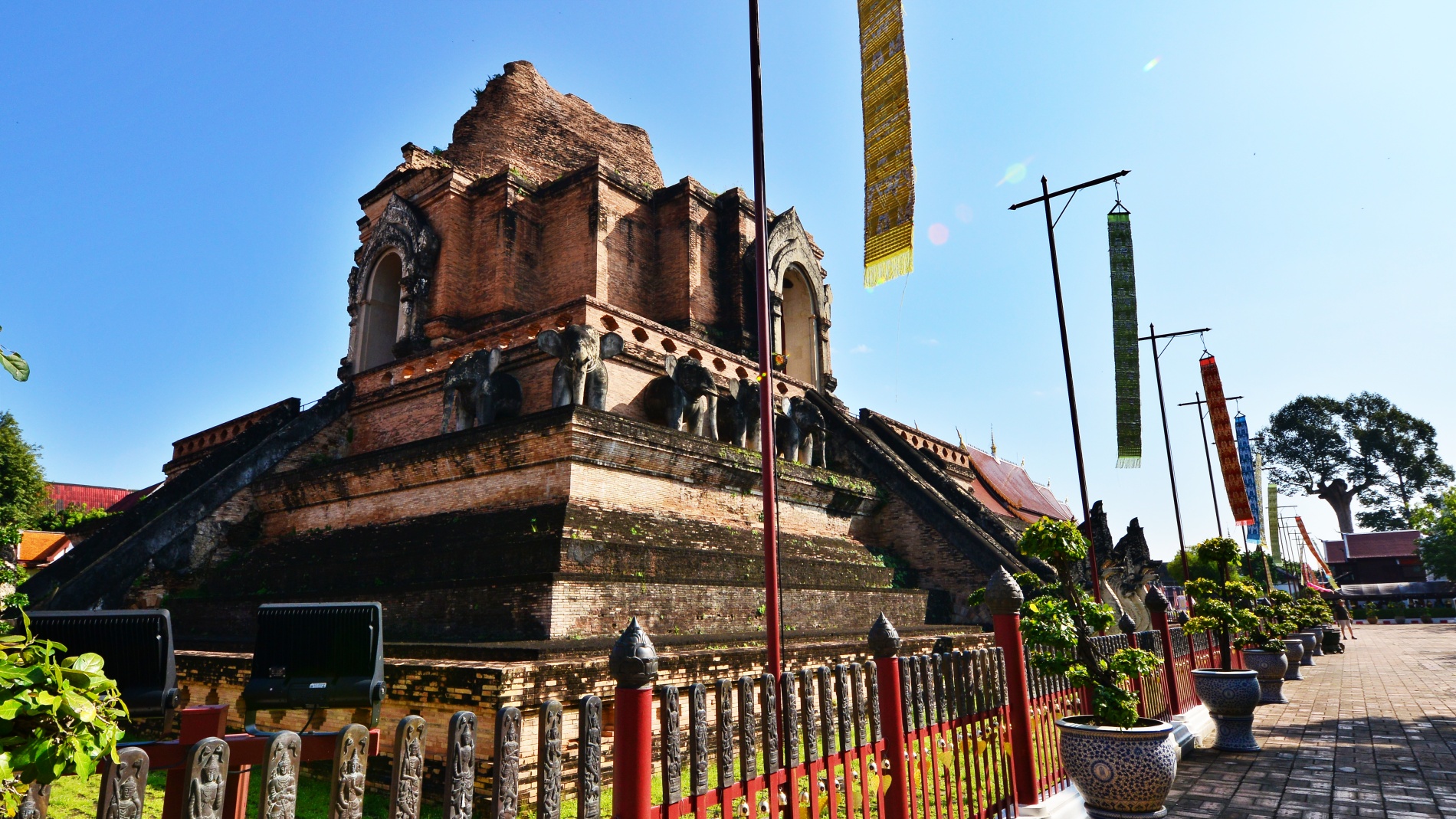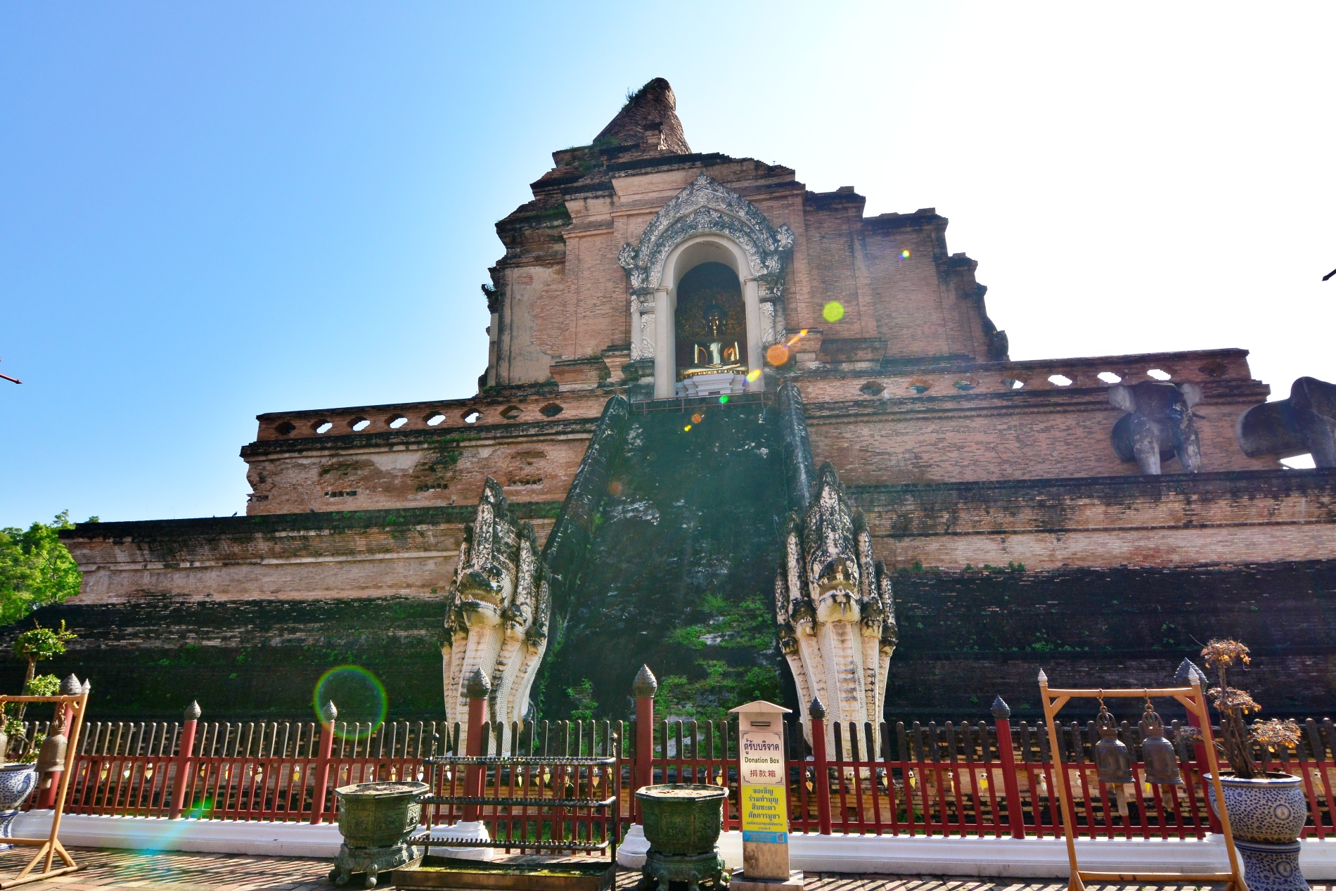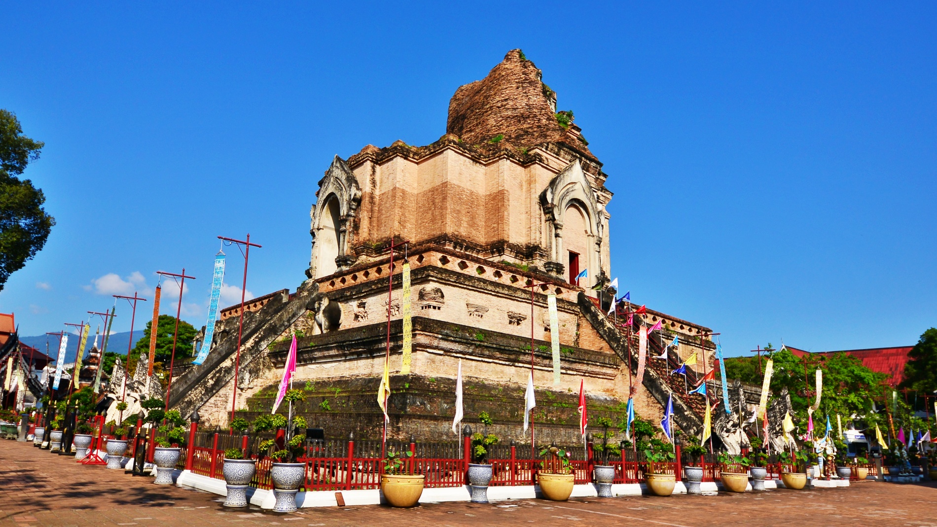 - 주요 볼거리: 거대한 벽돌 불탑(Chedi) 외에도 사원 입구의 거대한 양나무(Yang Na)와 치앙마이의 수호 기둥인 락무앙(Lak Mueang)을 볼 수 있습니다.