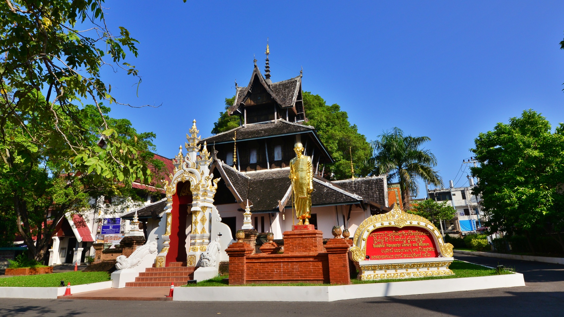 - 시티 필라 사당(Inthakhin Pillar Vihara): 사원 부지 내에 있는 작은 건물로, 치앙마이의 도시 기둥(City Pillar, Lak Mueang)이 안치되어 있습니다. 현지 라나(Lanna) 전통 신념에 따라 여성은 이곳에 들어갈 수 없습니다.