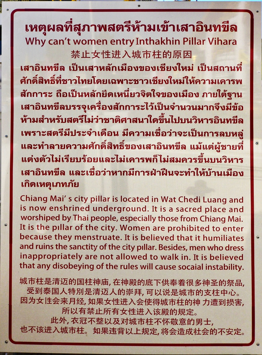 - 이유: 안내판에는 여성이 월경 중이라는 이유로 출입이 금지되며, 이는 도시 기둥의 신성함을 훼손한다고 믿기 때문이라고 설명되어 있습니다.
