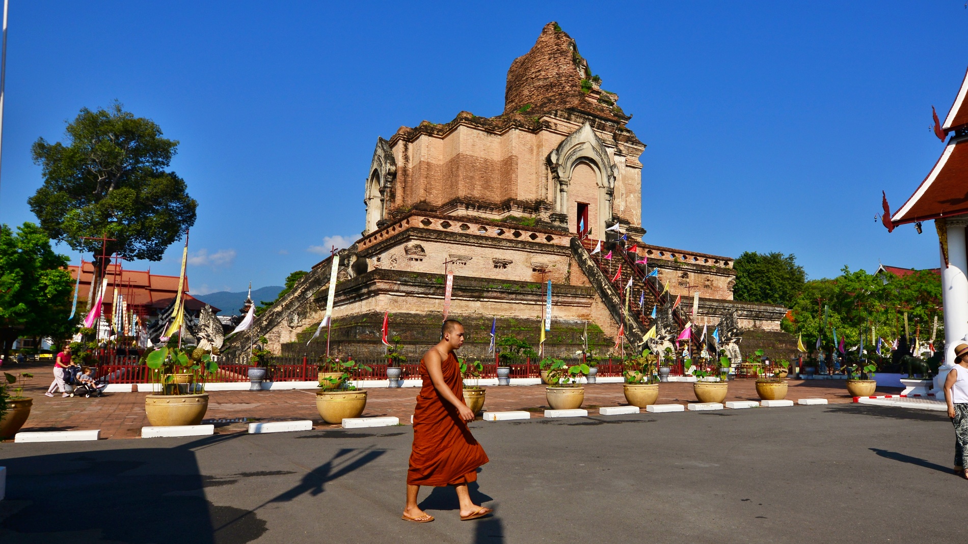 다른 본당이나 거대한 체디(탑) 주변을 포함한 사원의 대부분 구역은 여성도 방문할 수 있으며,