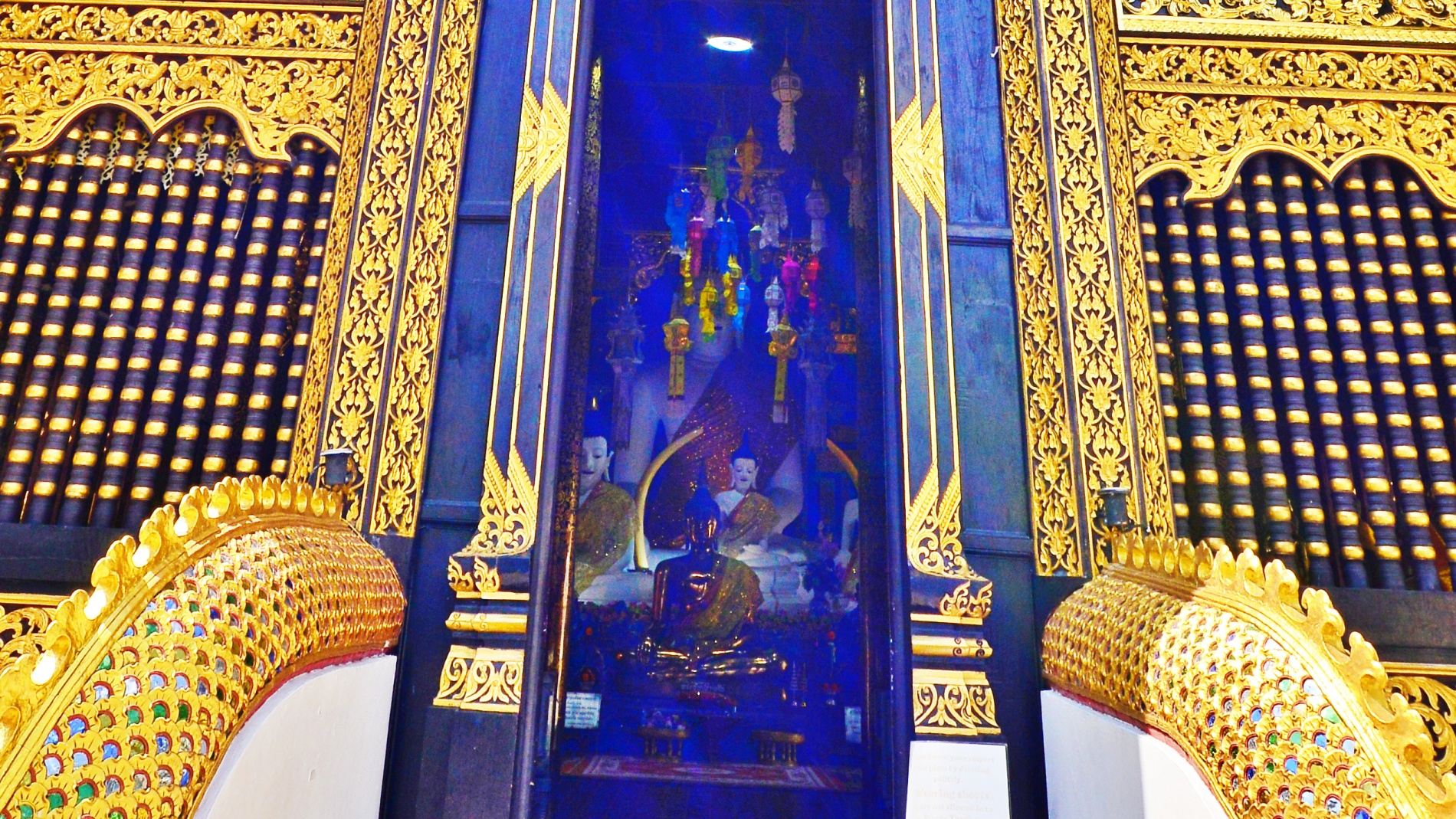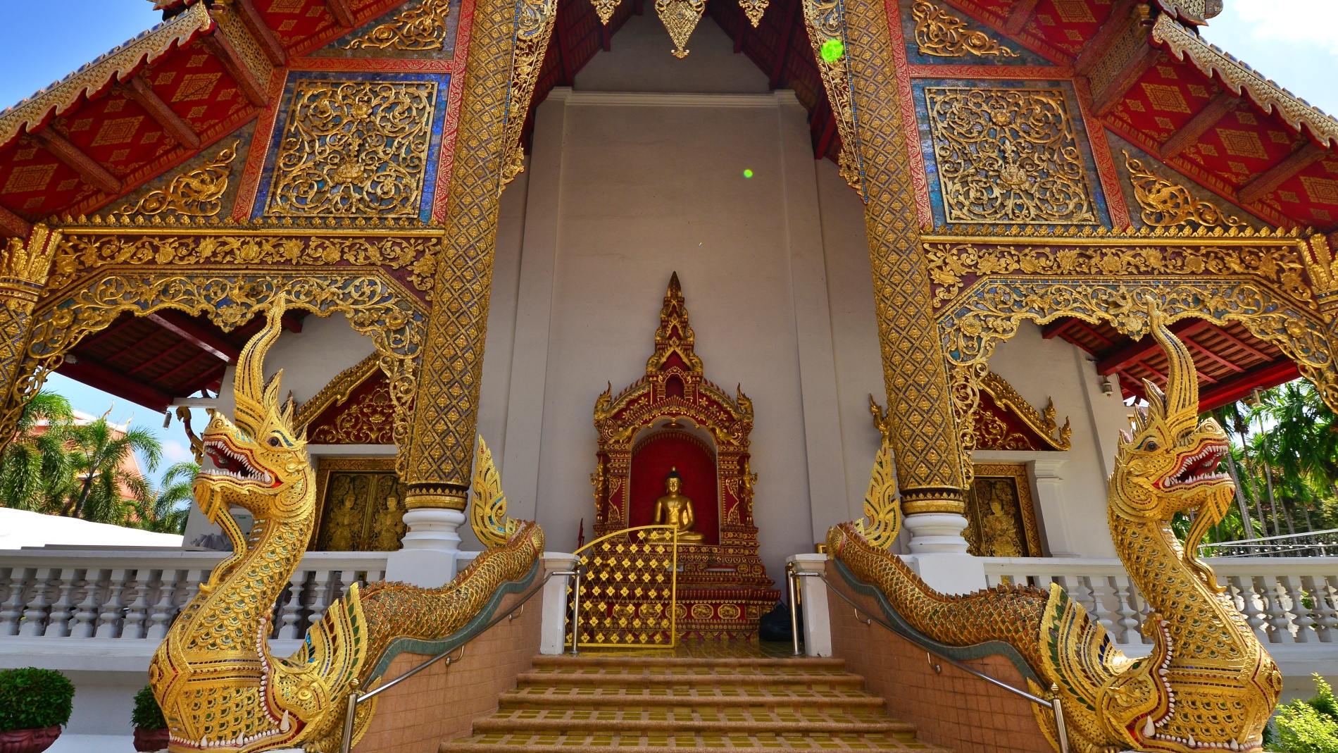 - 위한 라이 캄 (Viharn Lai Kham): 금으로 장식된 지붕과 섬세하게 조각된 목조 장식이 특징인 이 건물은 란나 양식의 대표적인 사례로 꼽히며, 내부에 프라 싱 불상이 모셔져 있습니다.
