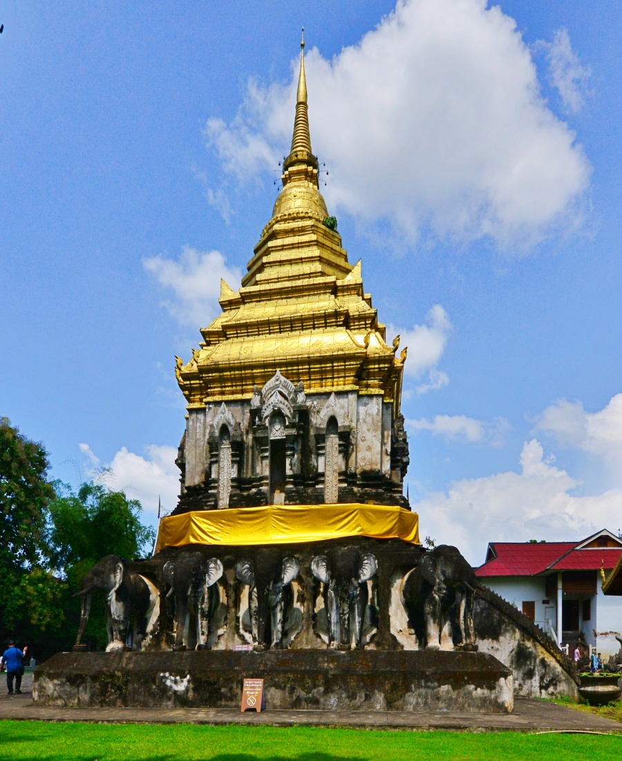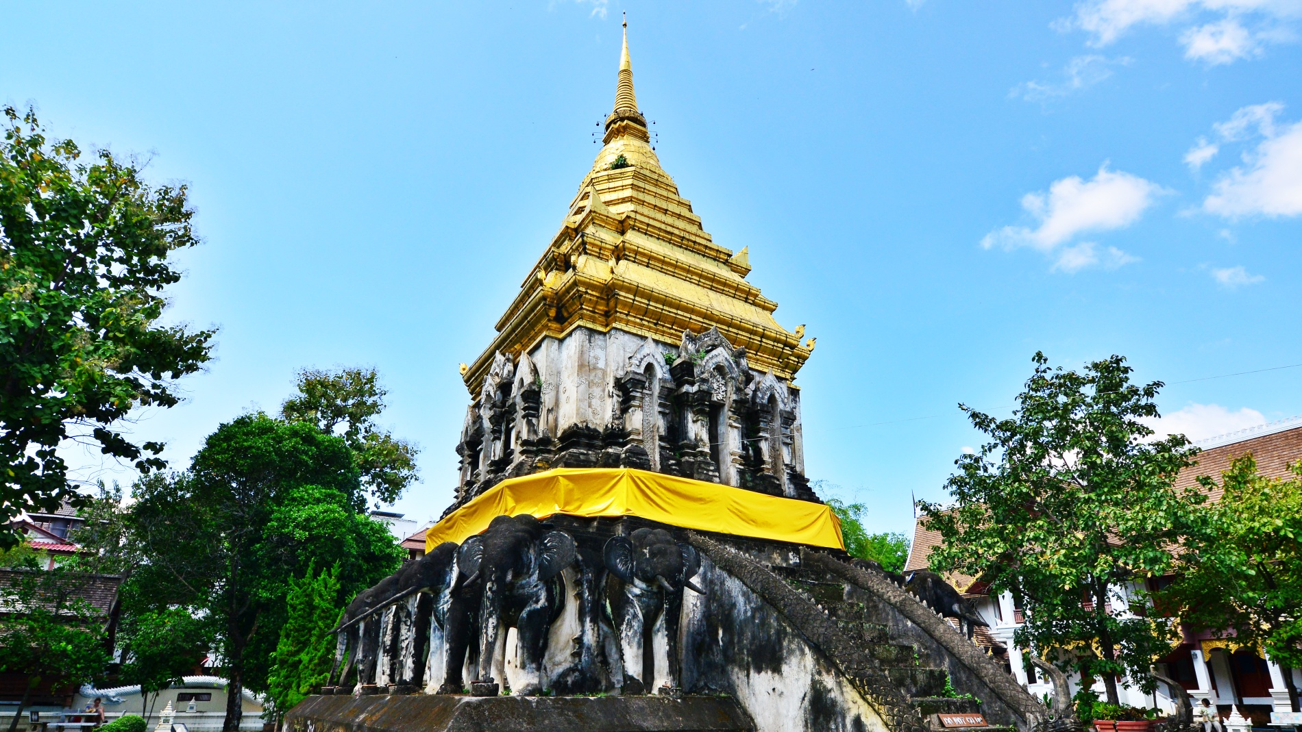 - 체디 창 롬(Chedi Chang Lom): '코끼리 체디'로 불리며, 기단부를 15마리의 실물 크기 코끼리 조각이 떠받치고 있는 독특한 형태의 황금빛 탑입니다.