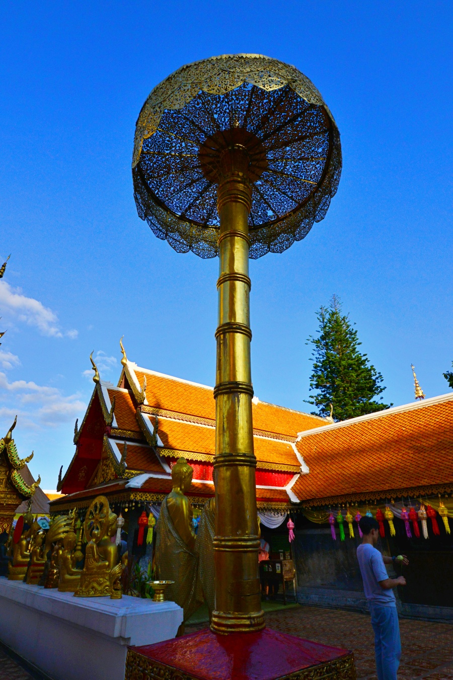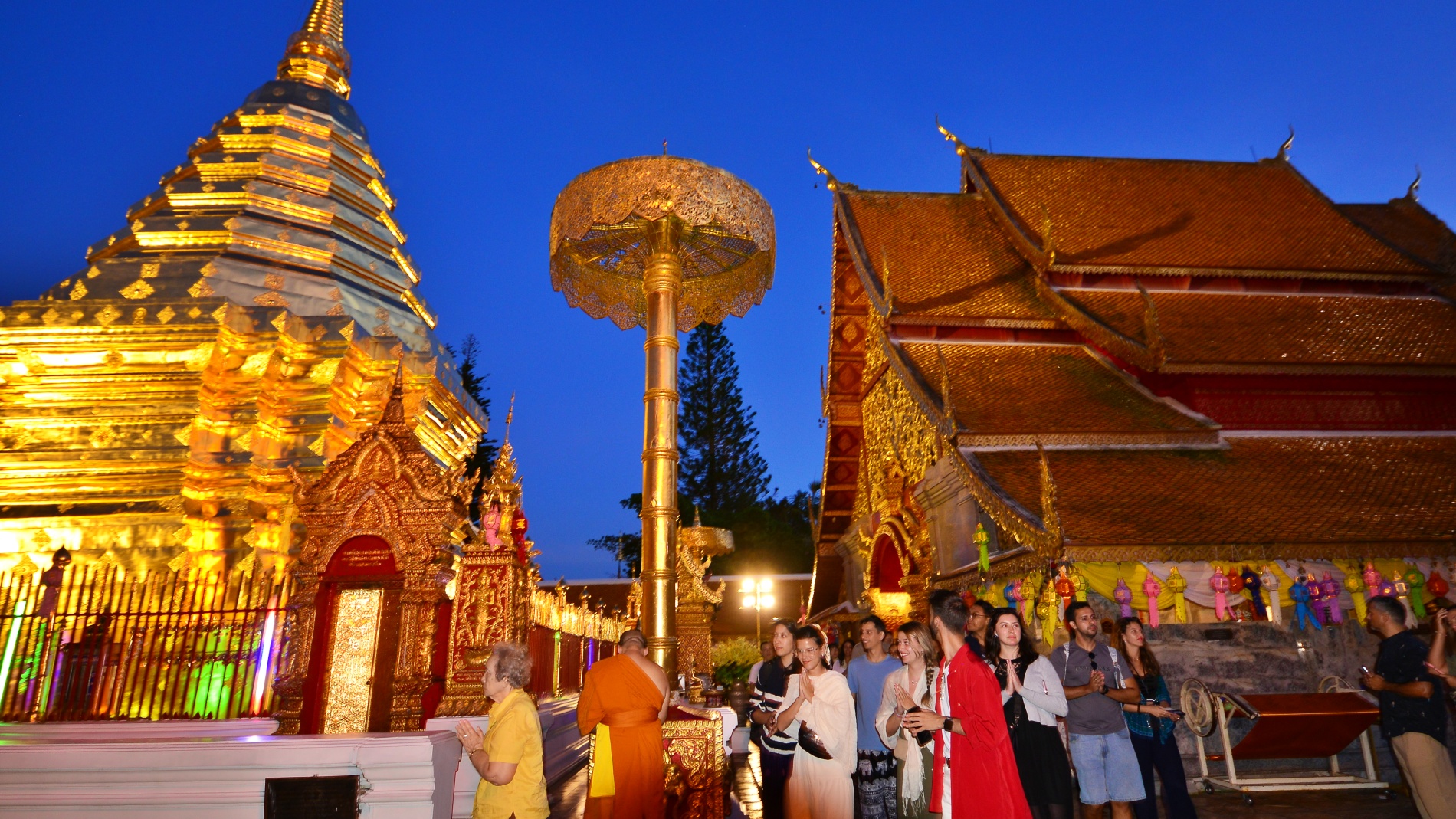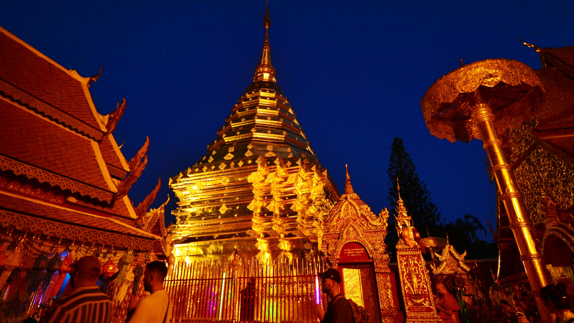 치앙마이의 상징인 도이수텝 사원(정식 명칭: 왓 프라탓 도이수텝)은 해발 1,000m가 넘는 산 정상에 위치해 시내 전경을 한눈에 담을 수 있는 태국의 불교 성지입니다.
