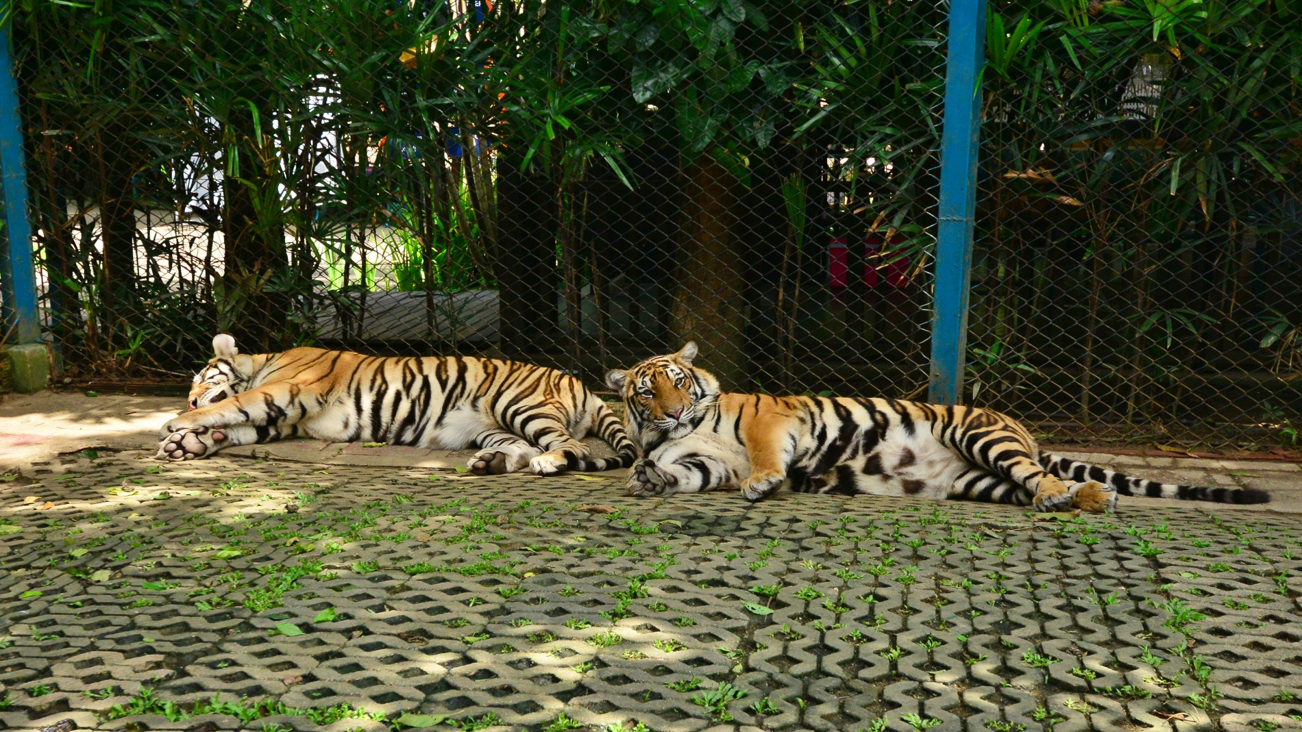 친구들의 권유로 혼자 호랑이 집으로 들어갔는데 첨엔 겁도 났지만 사육사의 도움으로 사진 몇 장 찍고는 나왔는데 우리 안에 누어있는 호랑이가 불상했네요...사람들의 호기심으로 이렇게 갇혀서 살아야하는 호랑이들...불행한건지..행복한건지...